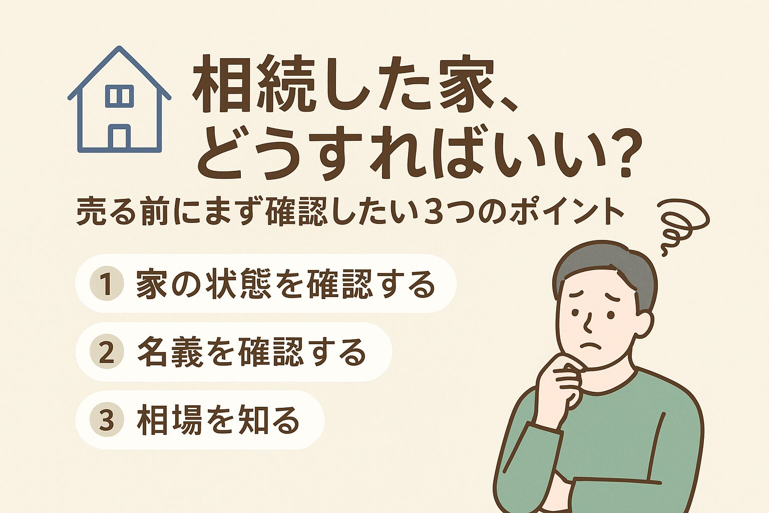 まずは、・家の状態・名義・相場この3つを確認するだけで十分前に進めます。